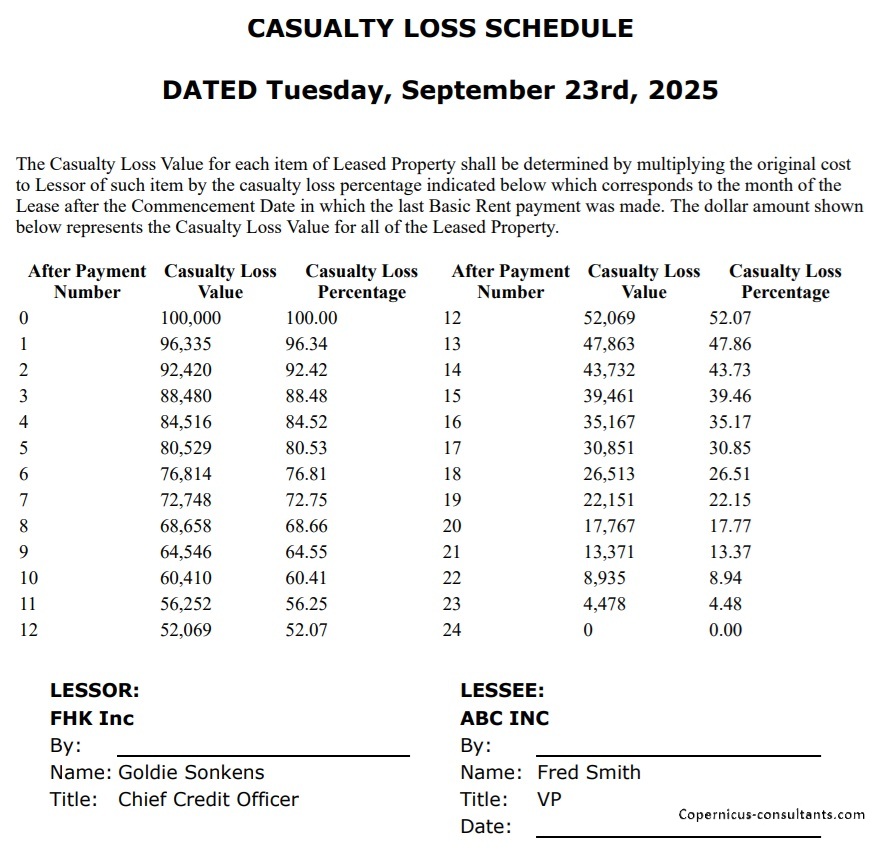 A Casualty Loss Schedule may be generated automatically as a PDF document with automated signature blocks (see Documents), for example