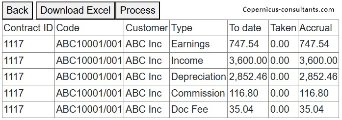 Copernicus enables the projection of payments and other cash flow items together with accounting profiles such as earnings and net book value for current business, pipeline business (proposals) and also budgeted items (projected volumes of business as user specified volumes, rates and terms