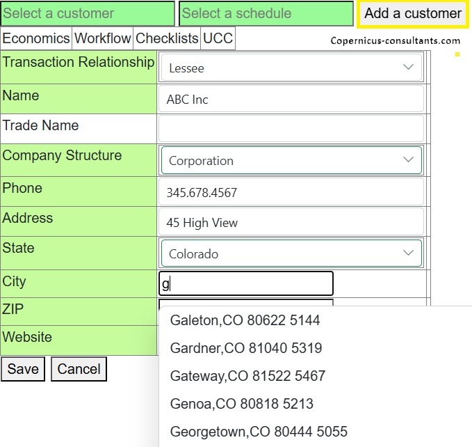 Loading a new proposal is very easy. Click on “Add a customer” and you can enter basic information. Further information about the lessee is gathered later if and when the proposal progresses. As well as the standard contact data you can define your own requirements